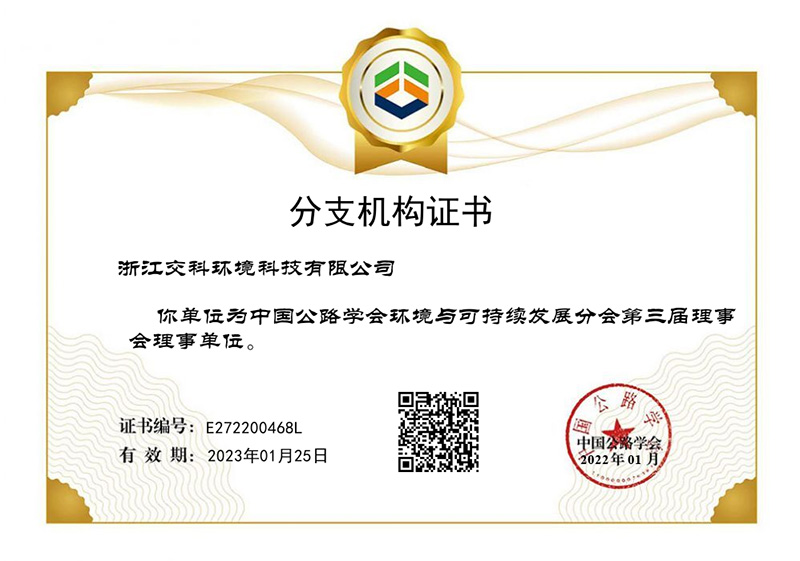 近日,我司被授予中国公路学会环境与可持续发展分会理事单位。